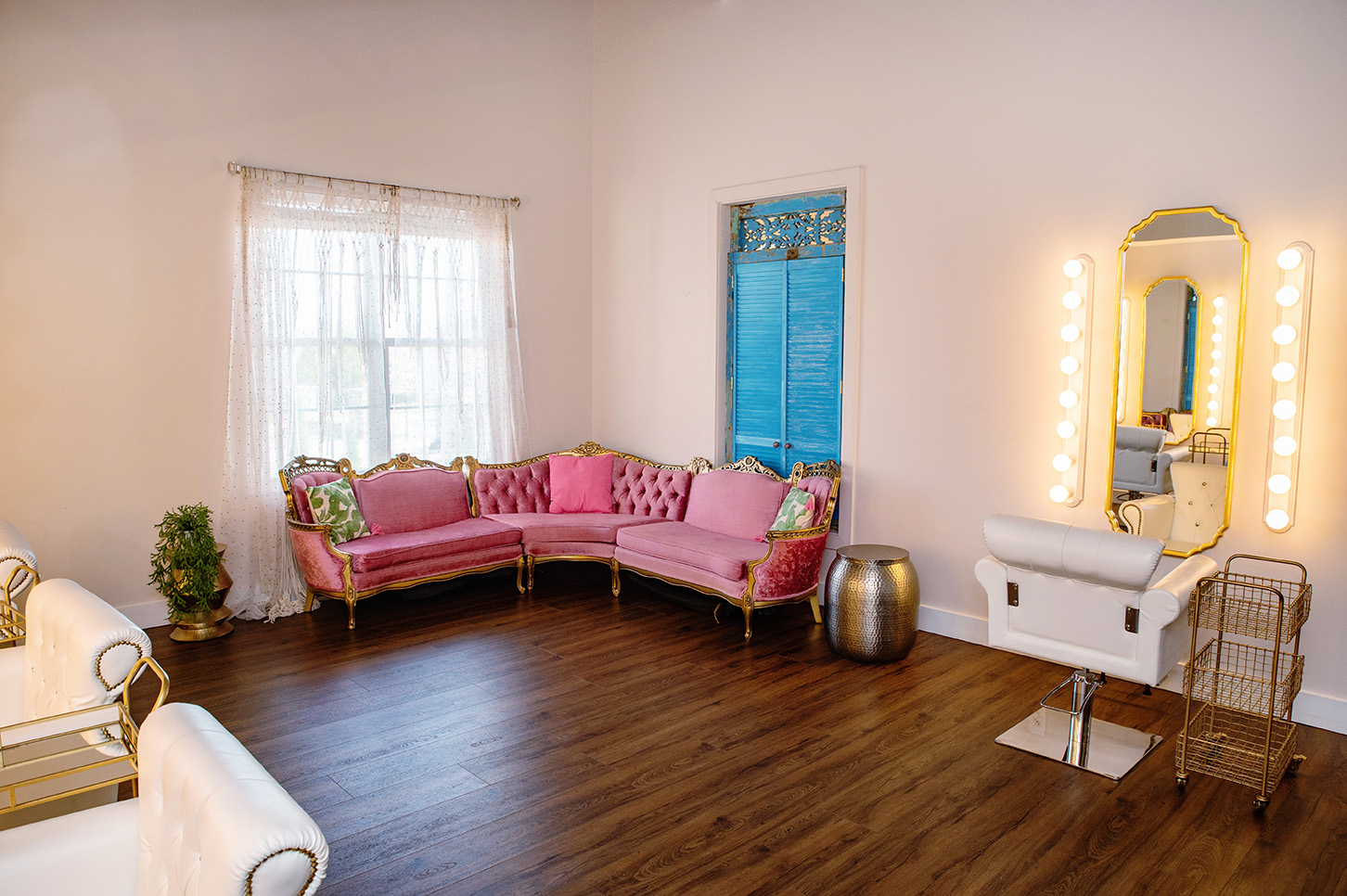 The Loft at Five Gables is an urban inspired wedding venue with enchanting features and eclectic vibes. The Loft offers a garden-style courtyard ceremony site adjacent to the indoor wedding reception area. This industrial wedding venue boasts high ceilings, iron details, and exposed brick, while the adjacent outdoor paved patio features bistro lighting and lush landscaping. The Loft features a bridal suite, grooms dressing quarters, a catering prep kitchen, and ample parking for all your guests.