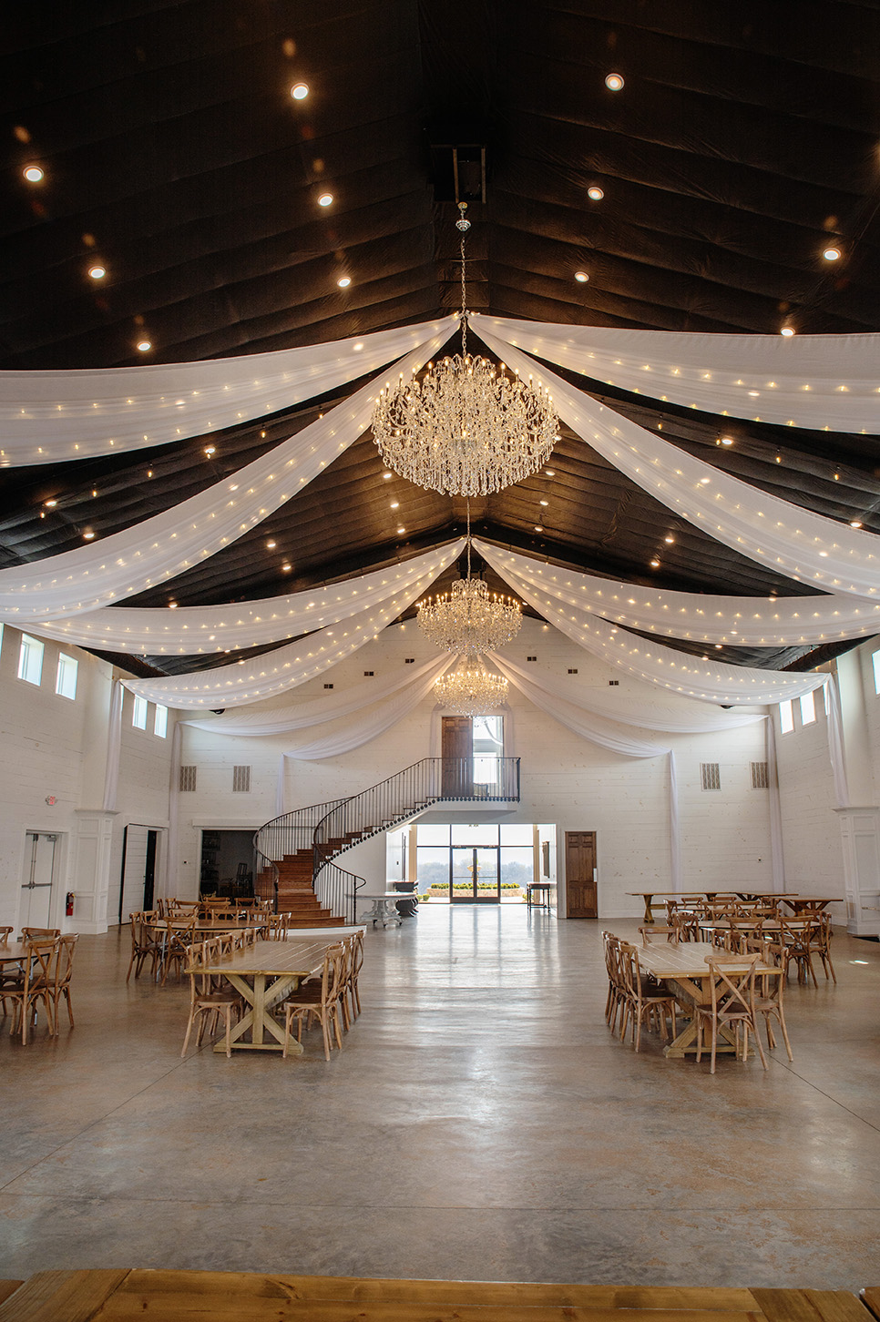 Howe Farm’s most luxurious venue yet, The Pavilion boasts 360 degrees of incredible mountain views. With a ceremony site that overlooks a magnificent panorama, the most exquisite sunset ceremonies have been witnessed from this venue. Chandeliers dripping in crystal, a bridal suite that takes the cake, and the ability to bring the outdoors into the reception hall with raised glass doors, The Pavilion tops the charts for spectacular Smoky Mountain wedding venues.